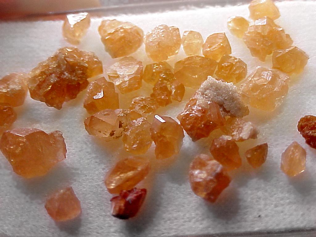 Цвет спессартина медово-желтый, желто-оранжевый, оранжево-красный, буровато-красный, реже бурый разных оттенков.