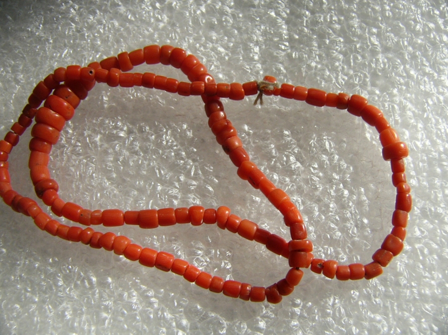 Отличные бусы из старинного коралла 19 века, Тибет, бусы тоненькие, миниатюрные, от этого смотрятся ещё интересней, 7 грамм, в отличном состоянии, на нитке.